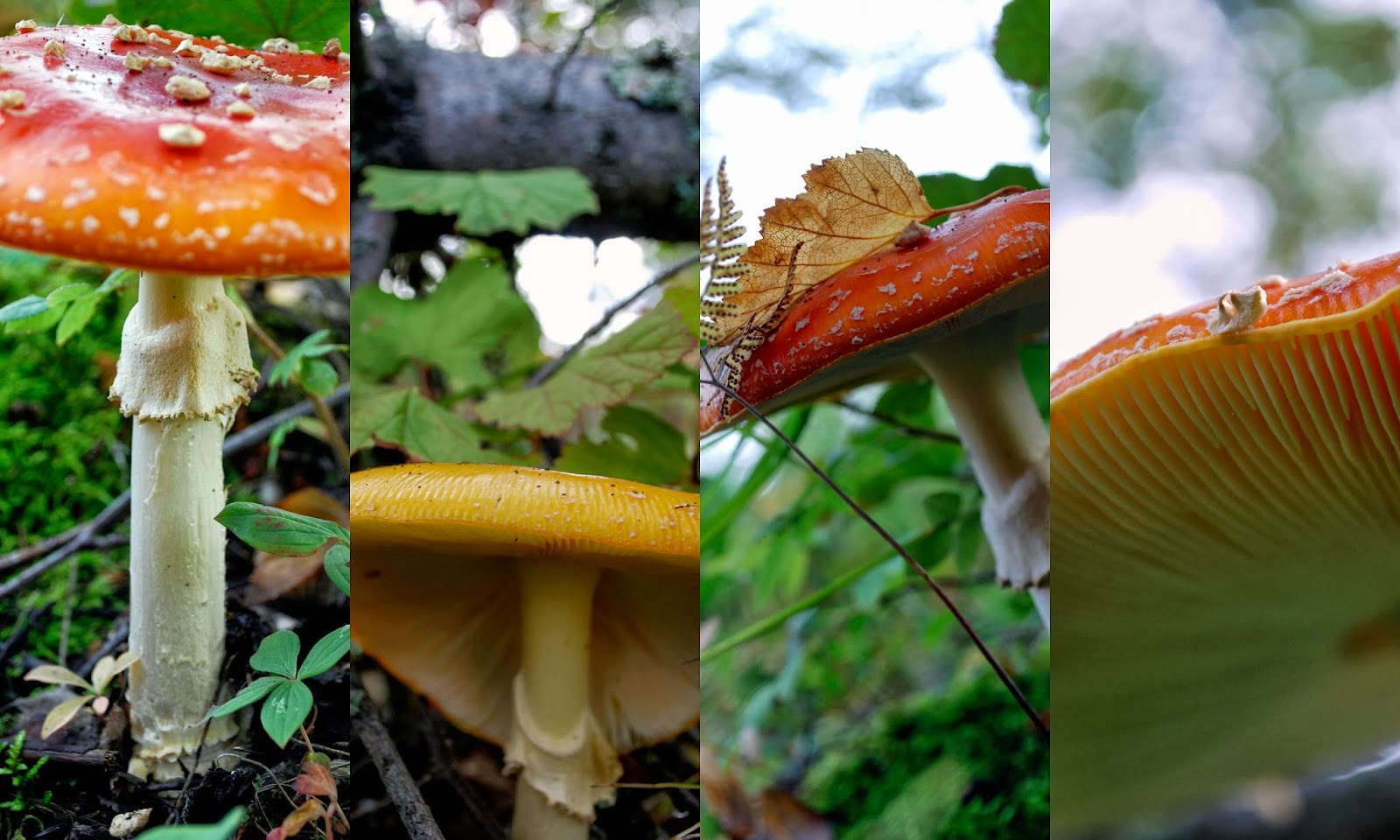 kinda like toddler smooches and knock-you-over hugs, candy and my mom's chicken noodle soup - mushrooms bring a smile to my face. it's that memory of childhood; summers at my grandparent's home, hunting for them around the birch trees, kicking them over, and ultimately, mushroom fights with my cousins. that rubbery texture, sticking to my neck and slipping down the back of my hoody, all the while laughing and squealing. the smell of alaskan air; they're part of that nostalgic space in my brain that fills me with happiness and feel-good goodness.