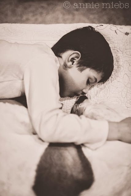 i found these sweet thangs, snoozing nose-to-nose in a very rare moment. happened to have my camera at arms reach and was able to fire off a shot - waking him no-less, but anything for the perfect little keepsake.